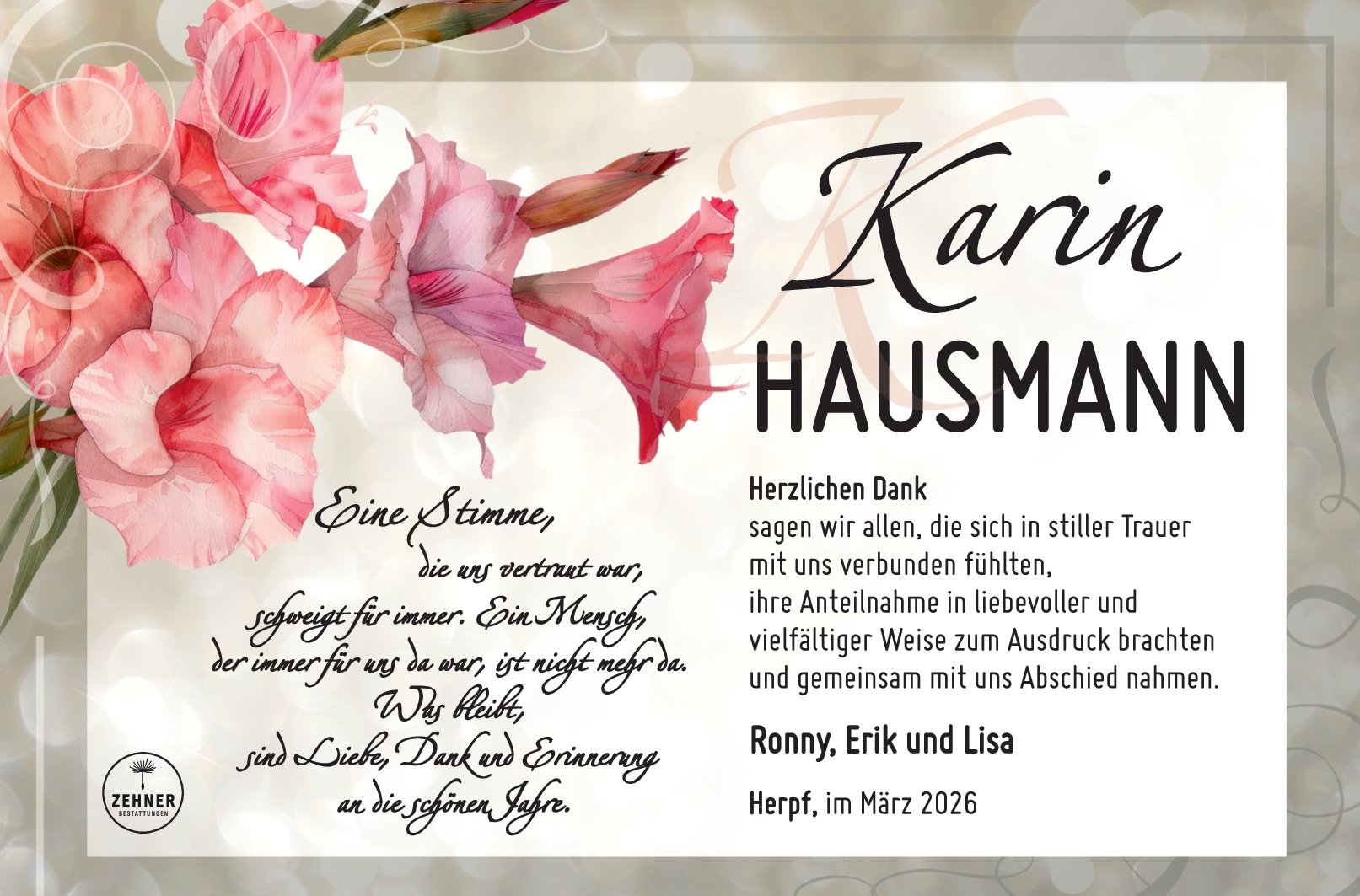 Es sind noch keine Kondolenzen veröffentlicht.